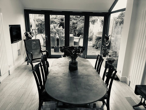 Kitchen/dining/family room with marble work tops and a full range of integrated appliances